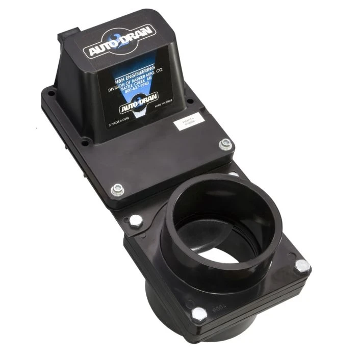 Mounts directly to conventional 3″ Valterra/Bristol type valves. (Valve not included, this is the motorized auto drain only)