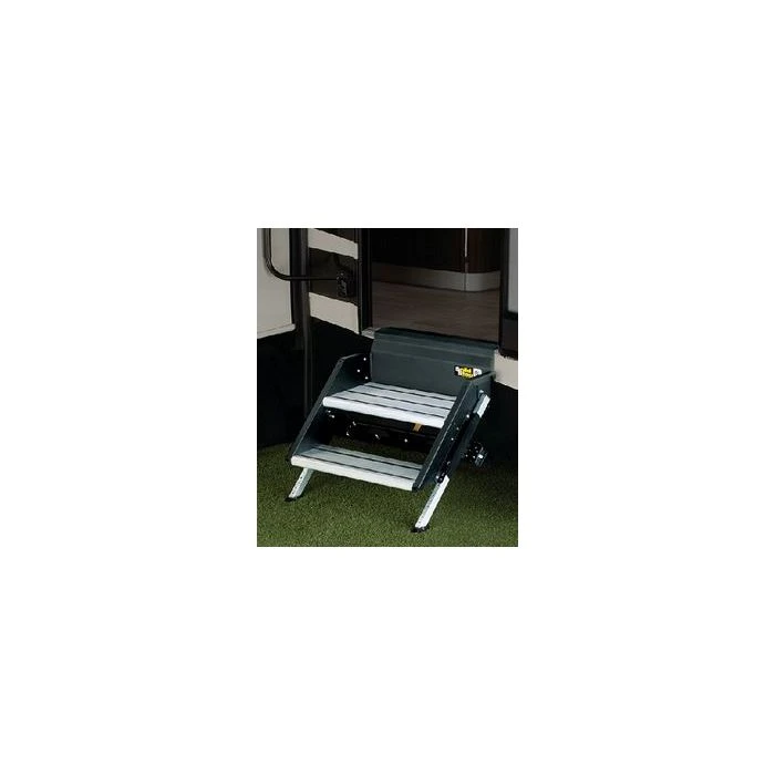 | Features | The SolidStep design permits the step to stow inside of the entry door, keeping road debris and corrosion away while simultaneously permitting continuous skirt metal on the RV, enhancing the aesthetics of the coach. Recessed feet prevent trip hazard and maximize clearance for camping spot |